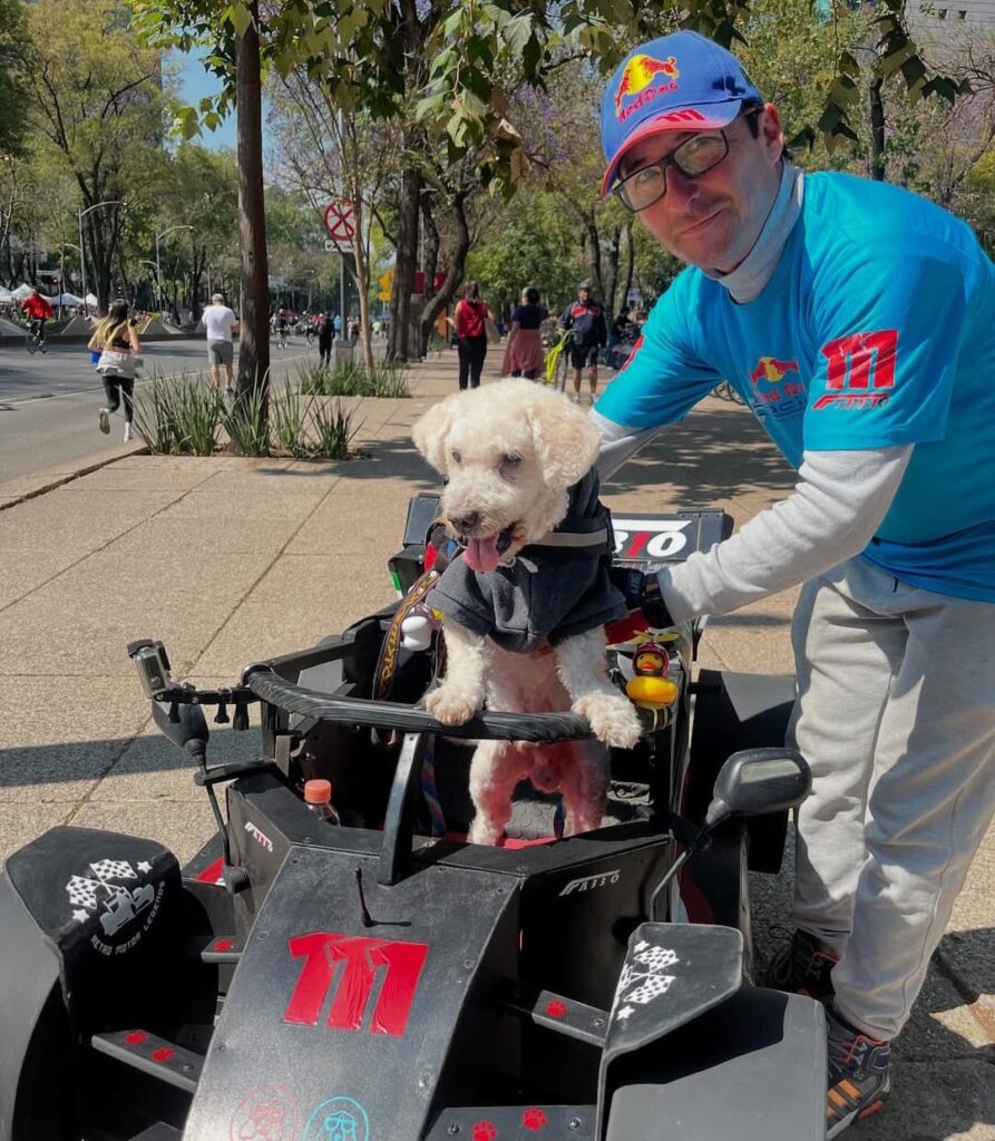 Este gran distintivo de ver a un perro sobre un mini auto de F1 en las rodadas de ciclistas y en los eventos de automovilismo captó el interés de las personas que los veían en vivo y en redes sociales, por lo que Fabbio se volvió una celebridad entre los seguidores del deporte motor.