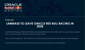 Como parte de estos ajustes, la escudería austriaca promoverá a Gianpiero Lambiase, actual ingeniero de carrera de Max Verstappen, al nuevo cargo de jefe de operaciones en pista (Head of Racing). En su nueva función, Lambiase estará al frente de todas las actividades en circuito, reportando directamente al director técnico Pierre Wache.