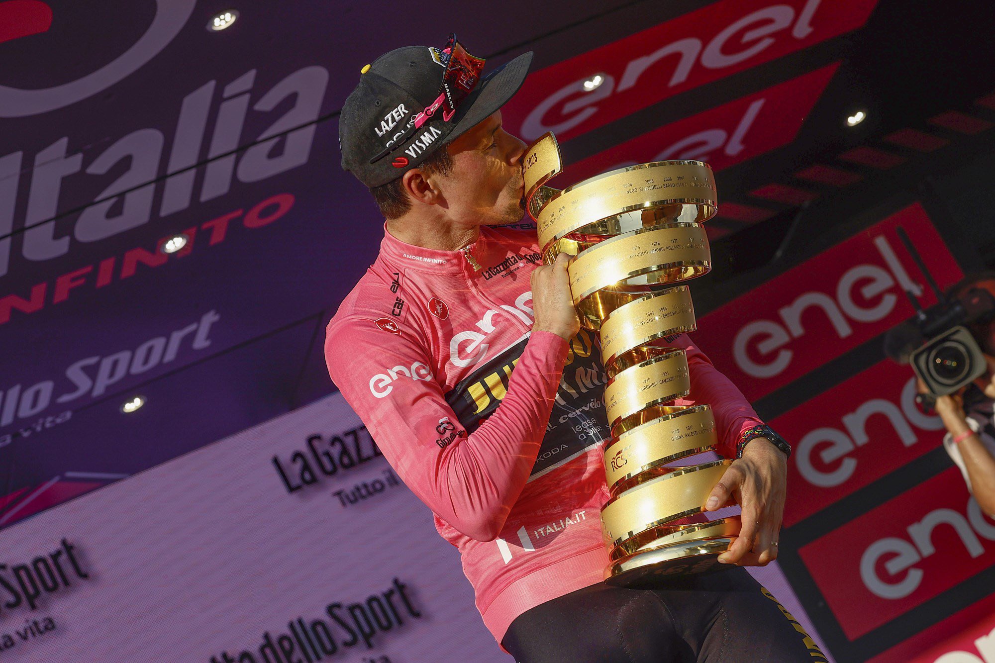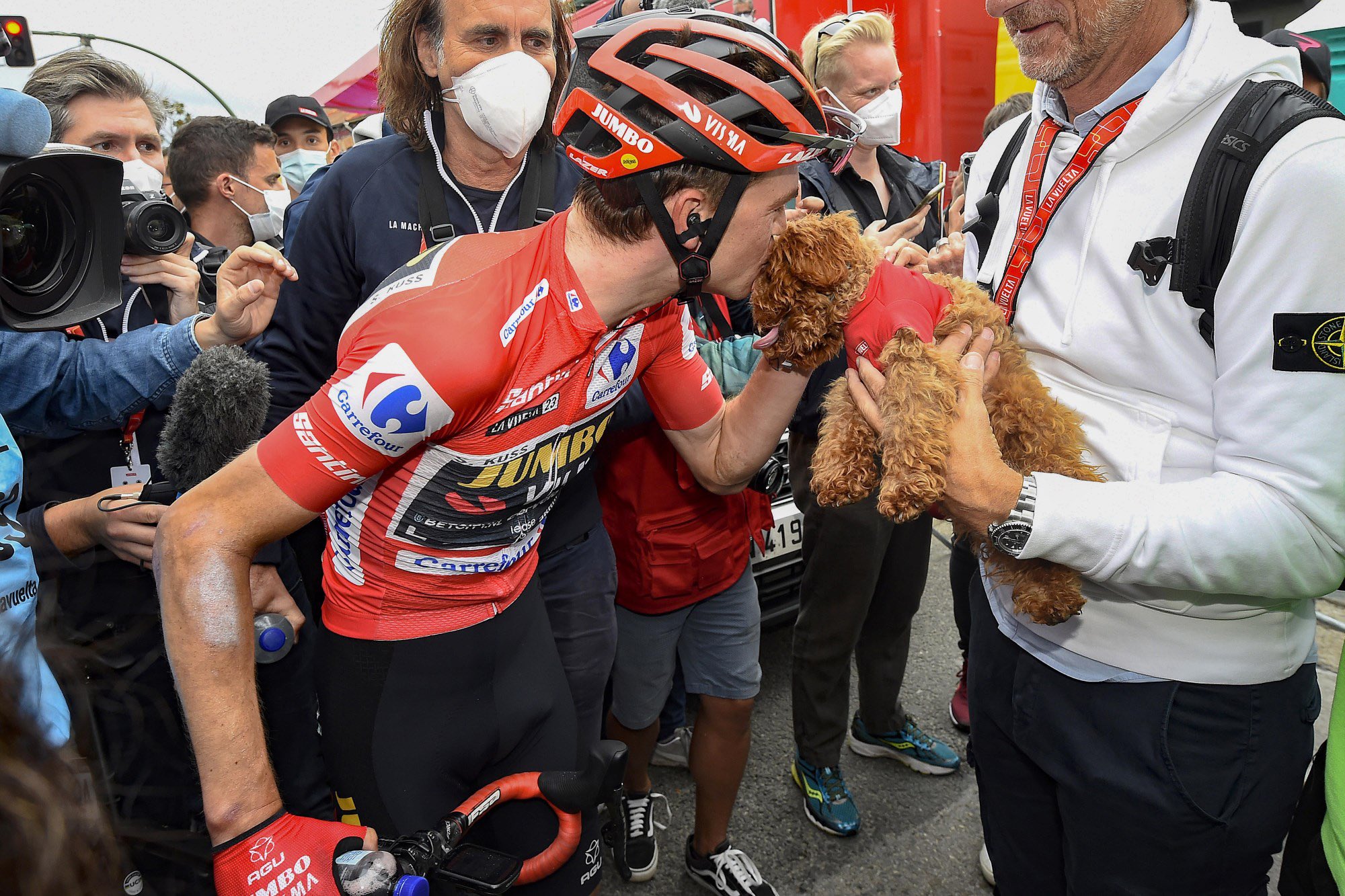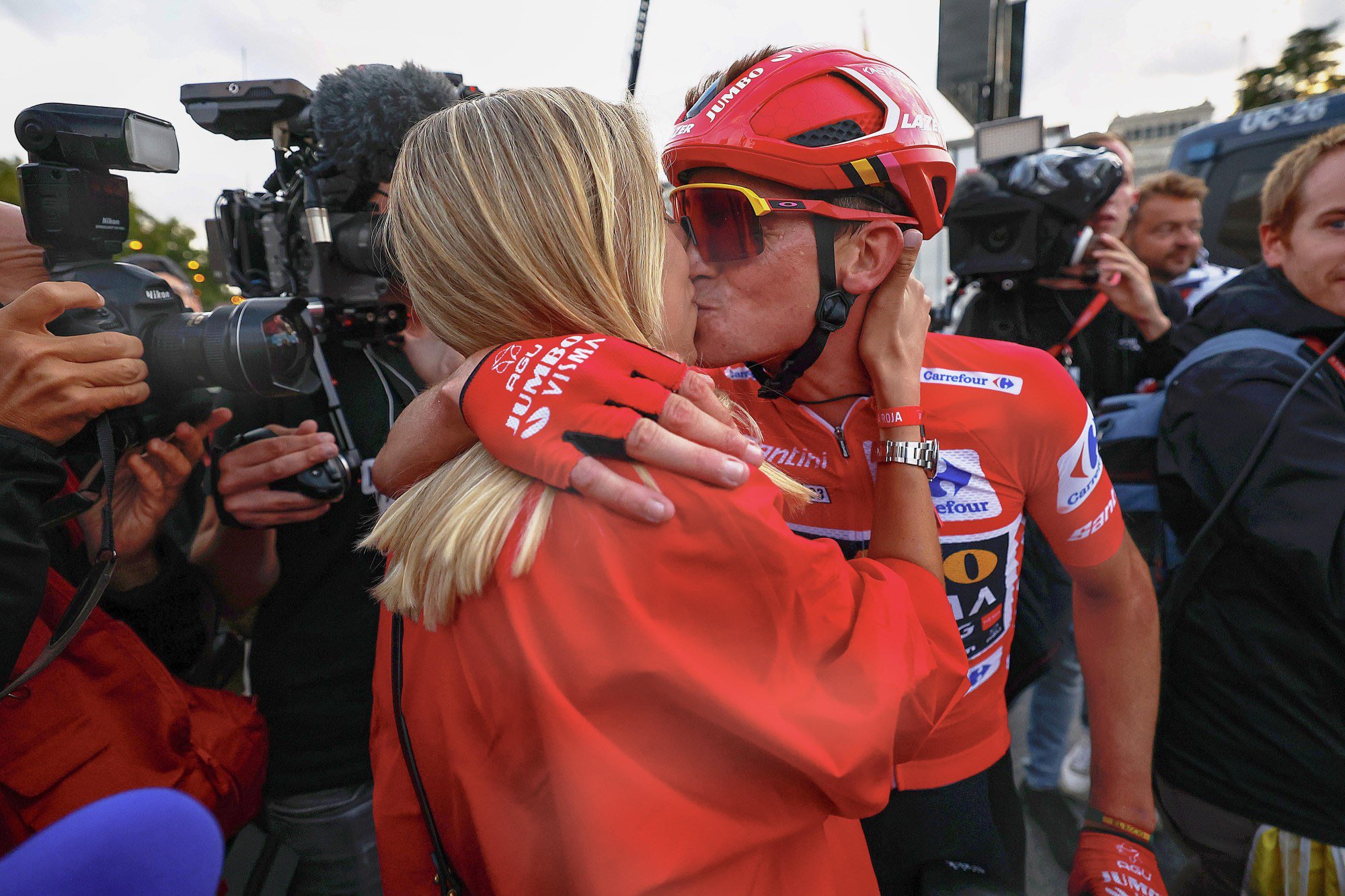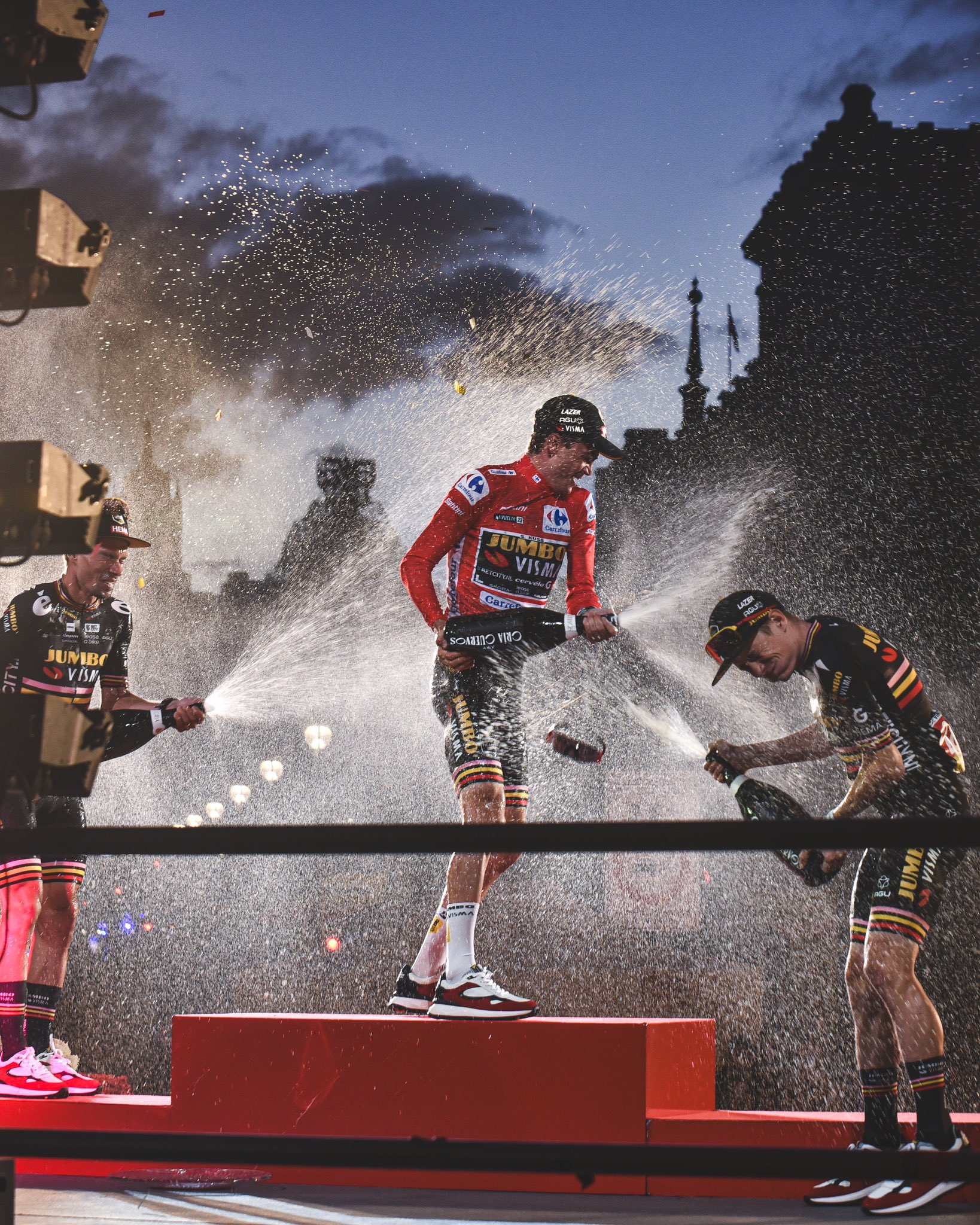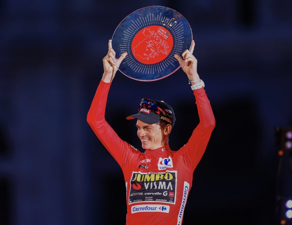 Al final, Sepp Kuss termina cómo campeón, el Jumbo-Visma cumplió su objetivo de adueñarse de las tres grandes Vueltas, el jersey utilizado en la última etapa de La Vuelta tiene tres franjas horizontales con los colores rosa, amarillo y rojo, los colores de cada gran vuelta, el podio en Madrid fue histórico, el equipo Kas hizo lo mismo en La Vuelta en el año 1966 ocupando seis de las siete primeras plazas, pero a diferencia de ese año el segundo lugar y el tercero son ocupados por el campeón del Tour y el campeón del Giro.